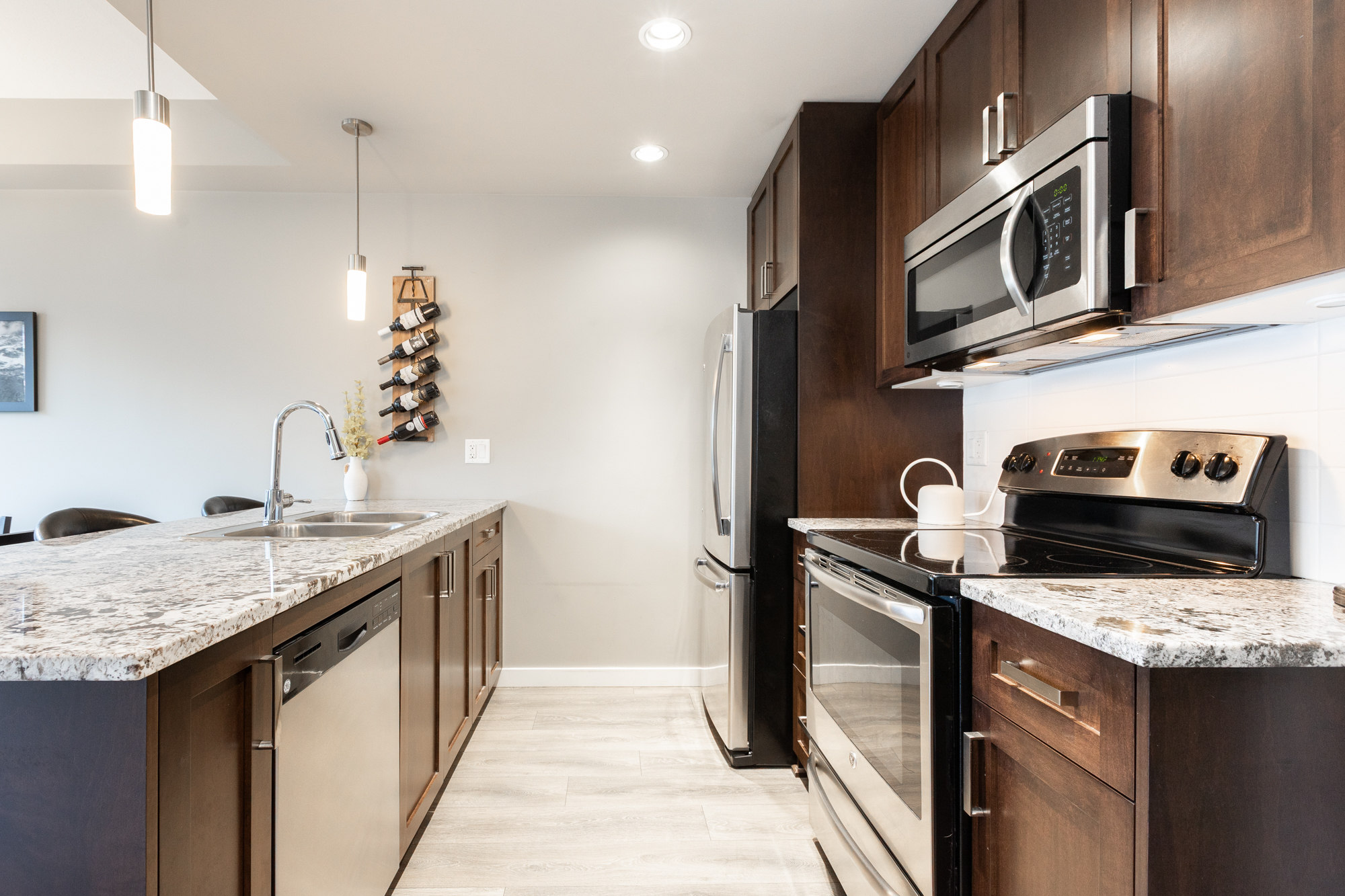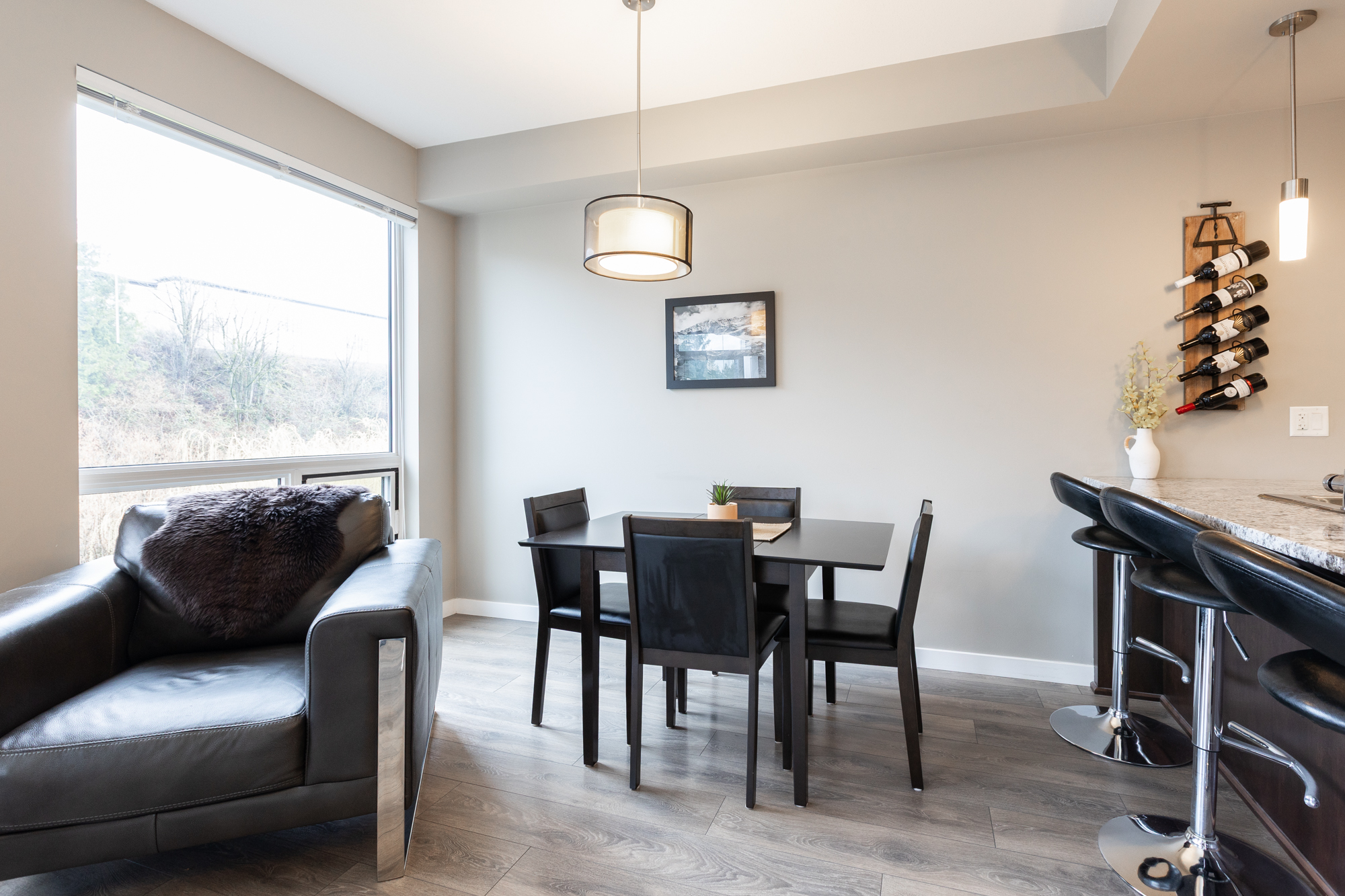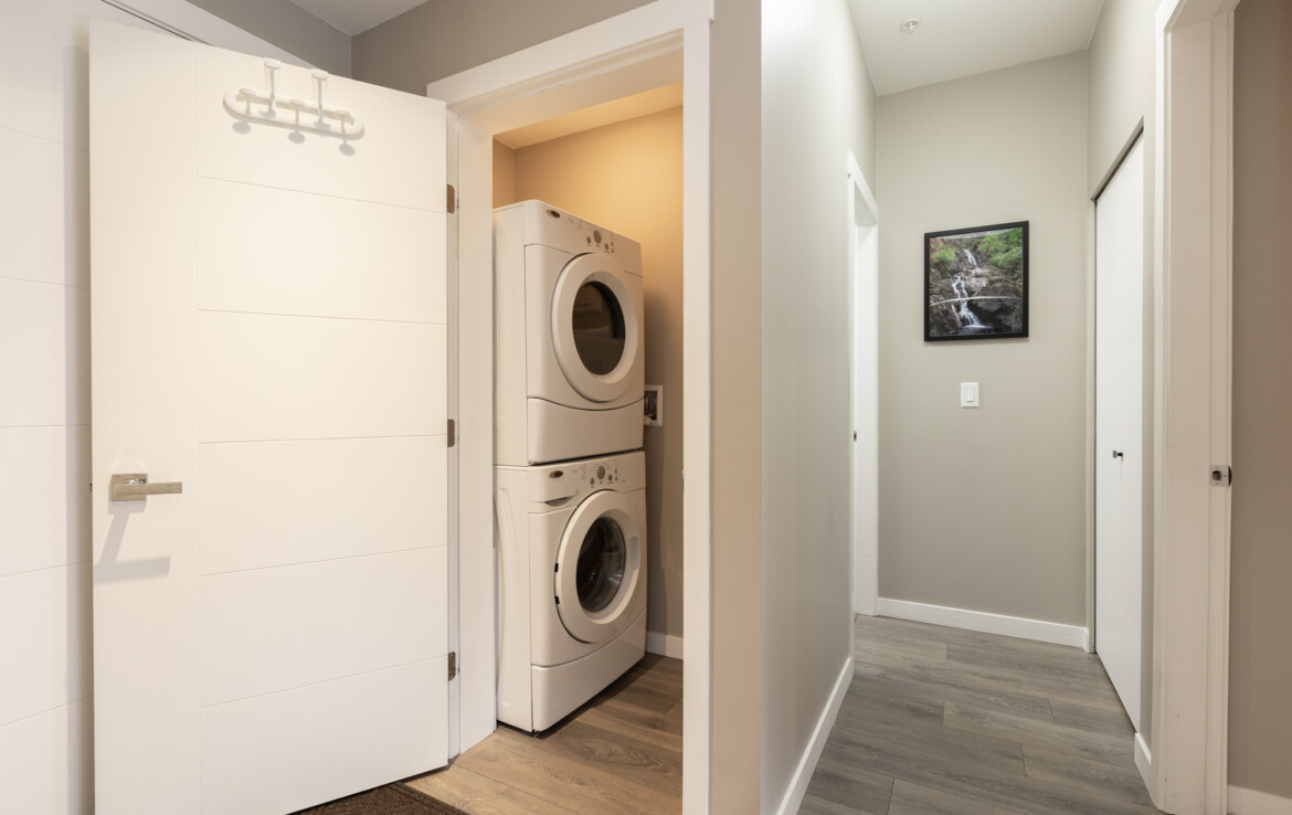 Welcome to your new home at the Waterleaf! This charming 1 bed and den, 1 bath home, faces onto an active wildlife green belt with some views to mountains, it’s in full bloom spring to fall! The cozy and quiet unit is like new, featuring granite counters, open plan kitchen to dining, living area, deck and the bedroom have views to green belt. Stay cool with wall mount A/C. A newer, well-maintained complex with desirable amenities with outdoor pool & hot-tub, gym, owners lounge, change rooms. Comes with 1 parking underground, 1 locker. Walkable to local amenities like restaurants, banking, groceries, pharmacy, recreation, golf, hiking and quick drive to all levels of schools, freeway access and border crossing. Have your agent book a showing soon!